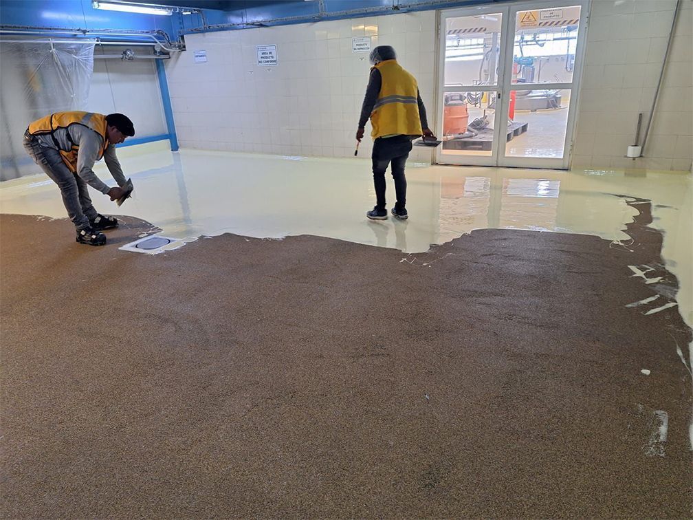 Piso epóxico caracterizado por su textura antideslizante que garantiza seguridad.