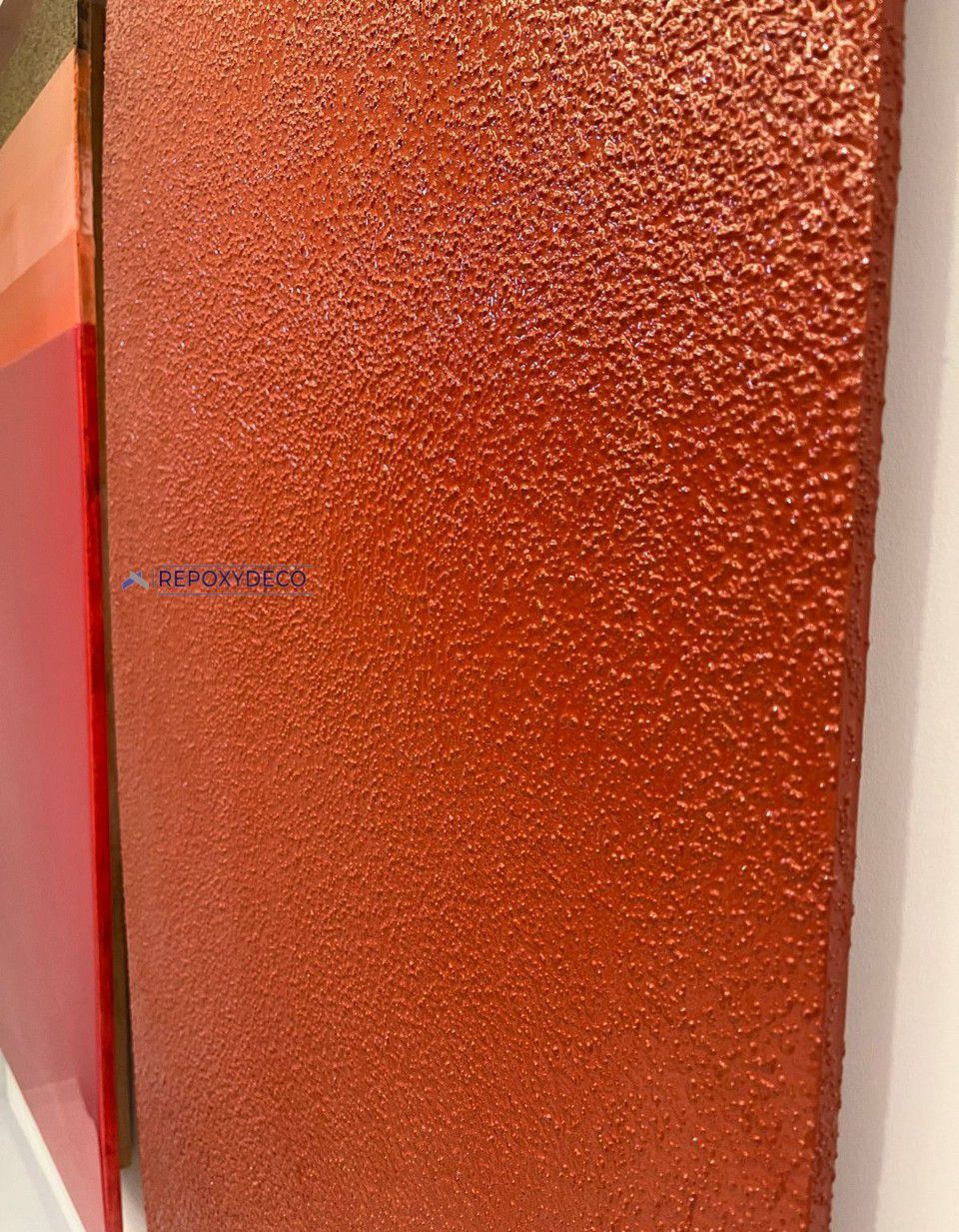 Combina resina epóxica y pequeñas piedras de cuarzo de colores